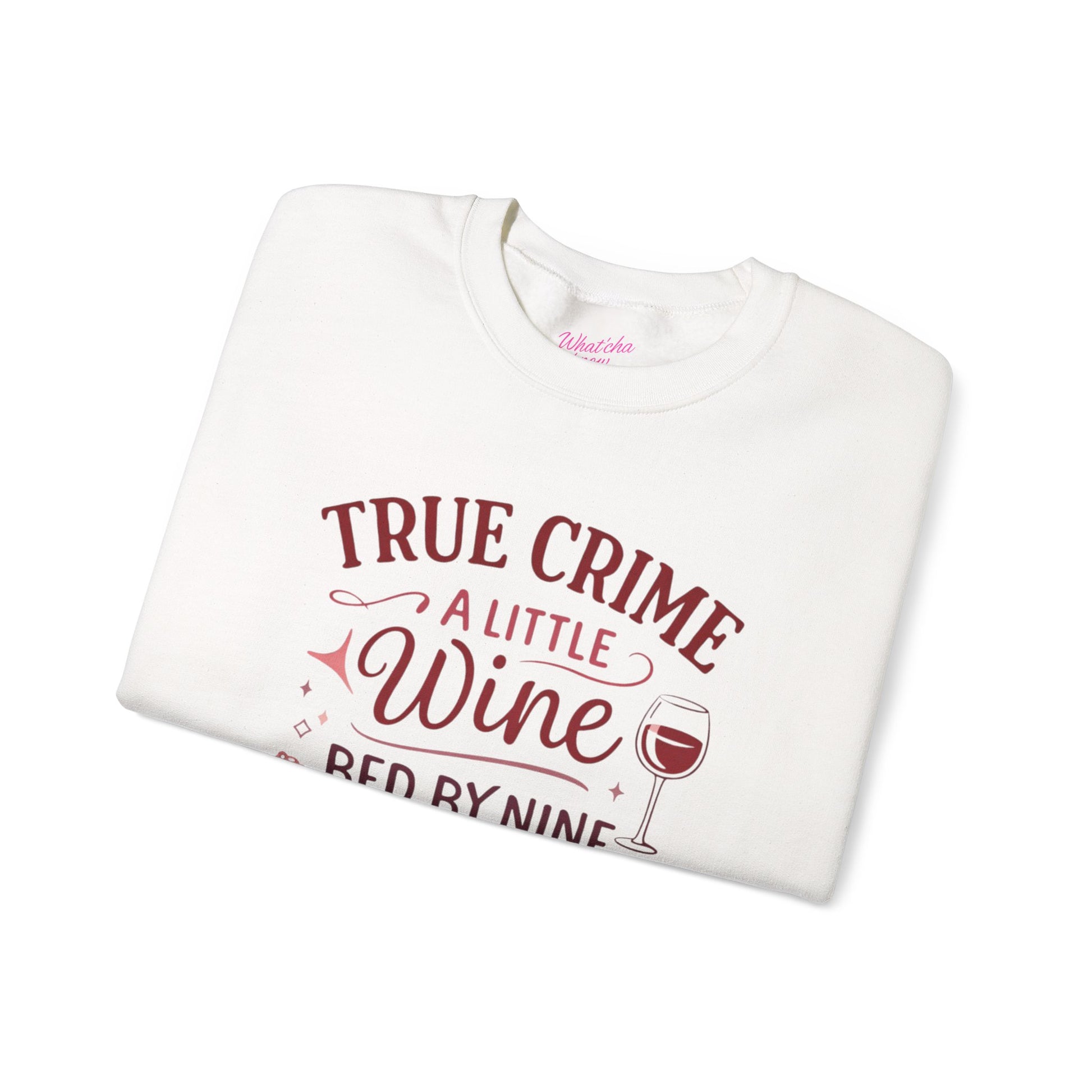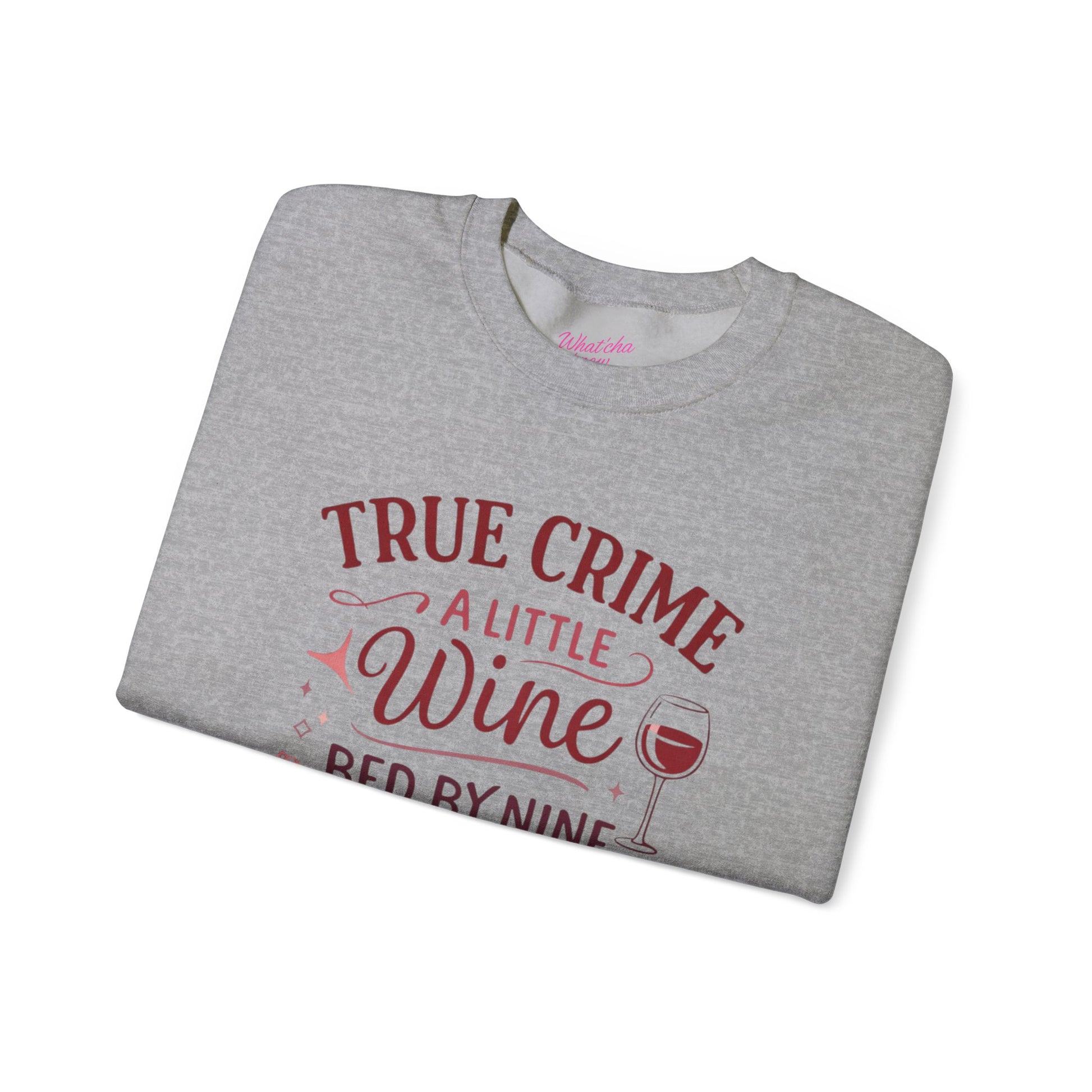 NEW Crewneck Sweatshirt — "True Crime, A Little Wine, Bed By Nine" Cozy Graphic Pullover